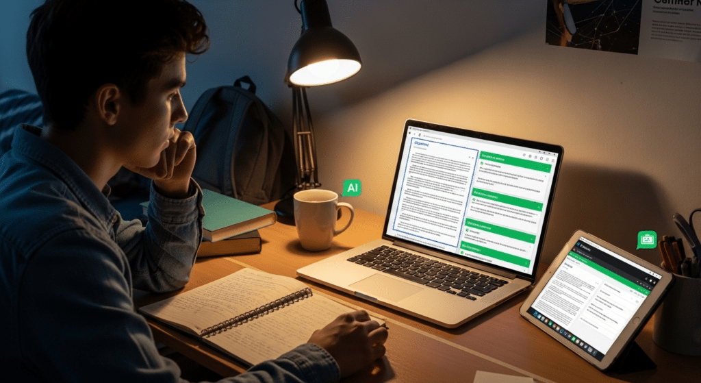 Students use AI tools to brainstorm ideas, organize notes, generate summaries, and receive instant