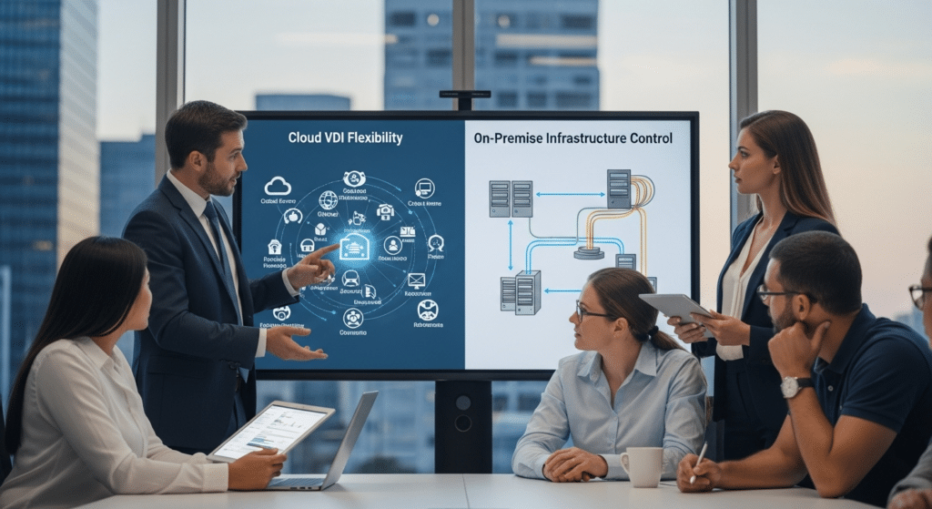 Choosing between cloud-based and on-premises virtual desktop infrastructure (VDI) isn’t just a technical decision,