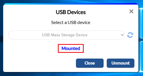 - Click Close to exit the pop-up, or you may click Unmount if you selected the incorrect USB device.
