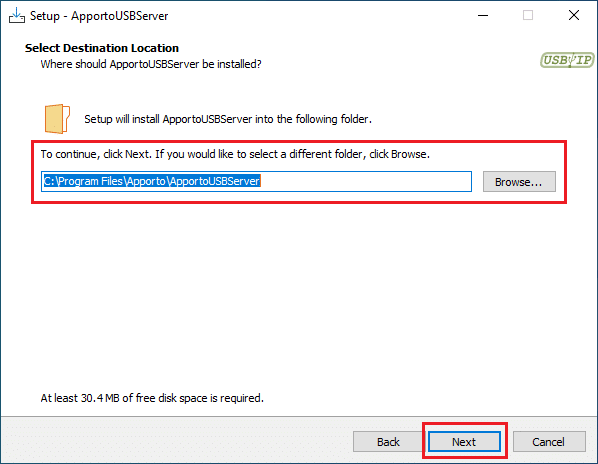 - Run the Apporto USB server installer (ApportoUsbServer.exe), and click Next to proceed.