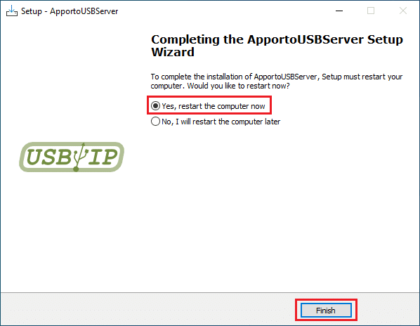 - Select Yes, restart the computer now and click Finish to exit the installer.