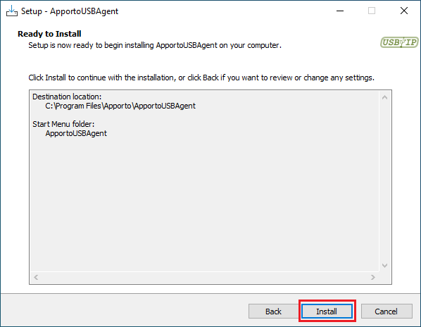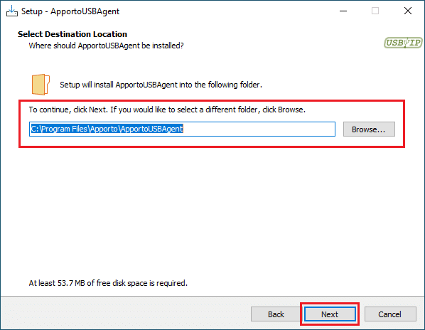 - Run the Apporto USB agent installer (ApportoUsbAgent.exe), and click Next to proceed.