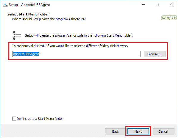 - Select the appropriate Start Menu folder where the shortcut will be created, then click Next to proceed.