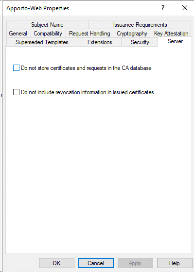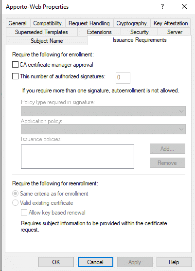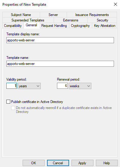 - Leave defaults until Request Certificates. Select Apporto-Web template and click Details-Properties.
