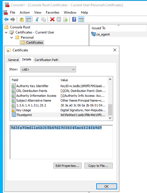 - Go to Certificates – Current User – Personal – Certificates.