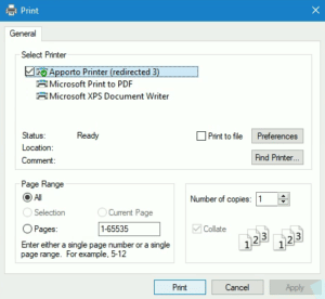 Occasionally you may need to print a file from an Apporto cloud desktop or application.