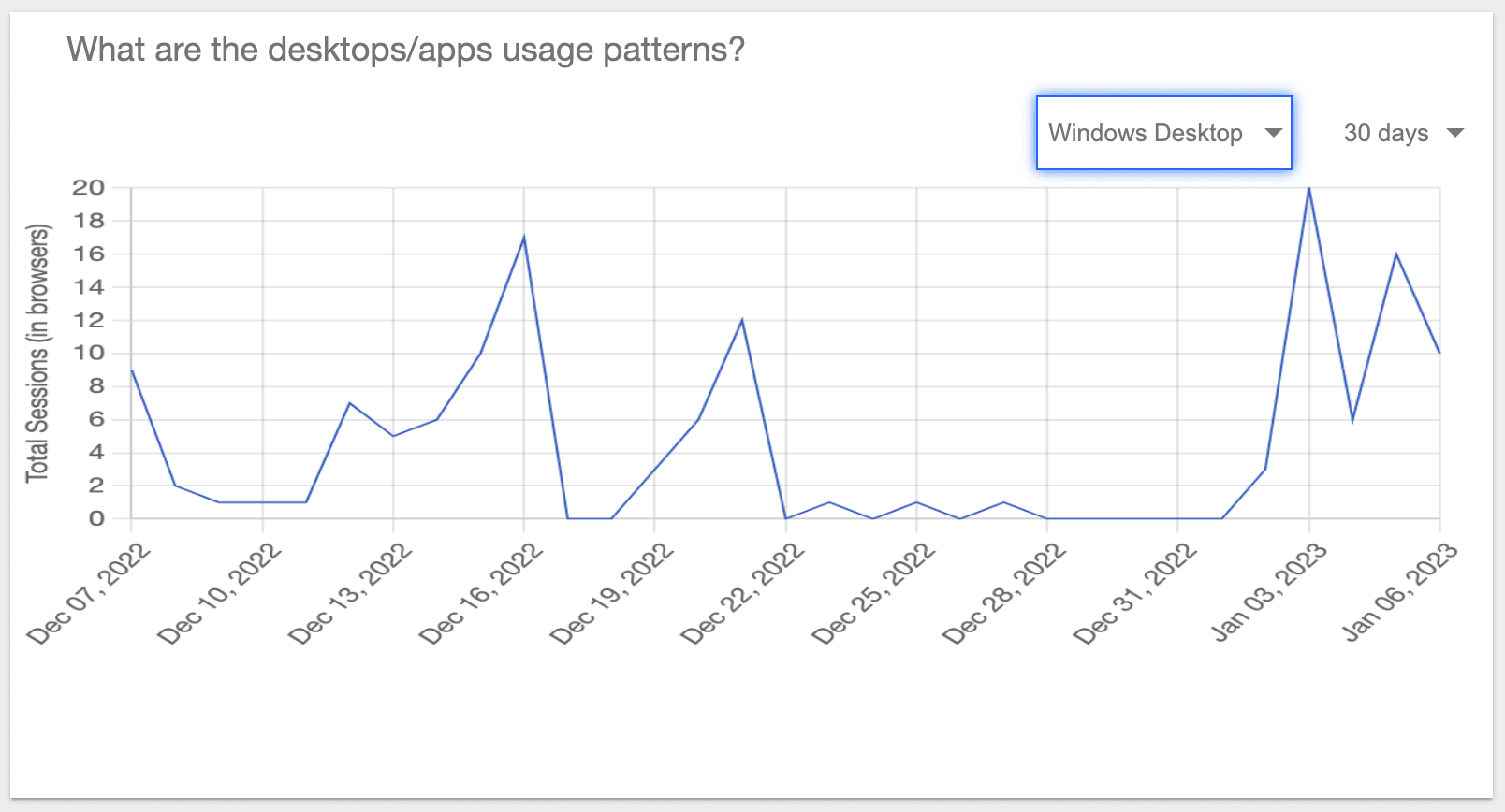 Mouse over a bar on the graph to view usage statistics for the associated desktop/app.